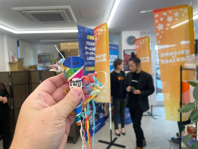 前日から準備に奔走し、初出社の瞬間をクラッカーで華やかに祝福しました!