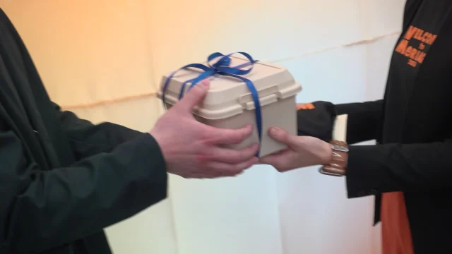 最後に、新入社員のまっつんには特別な「ウェルカムボックス」を贈呈。