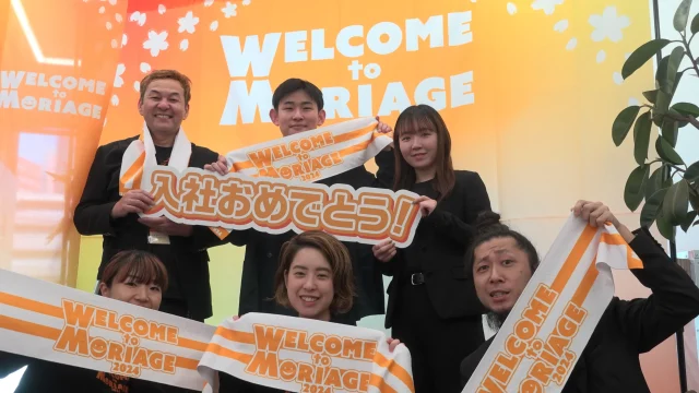 今回の入社式は、まさにモリアゲアドバイザーらしく、私たちのモリアゲ商品で新入社員をお出迎え。