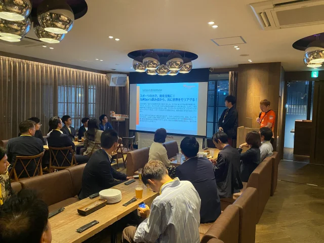 参加者同士の交流時間も設けられ、多くの新しい出会いと情報交換が行われました。特に、スポーツビジネスに携わる企業やスポーツチームの方々が活発に名刺交換をしている姿が印象的でした。