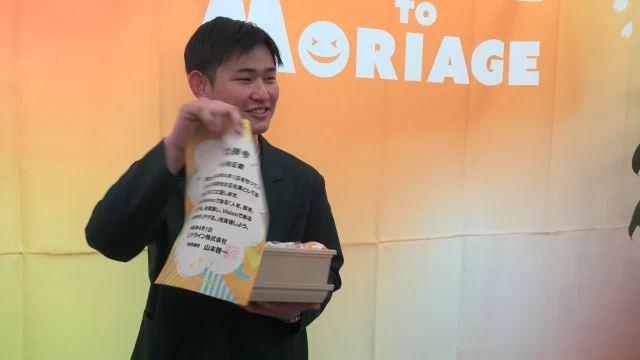 さらに、松野には特別な「ウェルカムボックス」をプレゼントしました。名刺やタペストリー、モリアゲオリジナルグッズが詰め込まれたギフトに、私たちの歓迎の気持ちを込めました。
