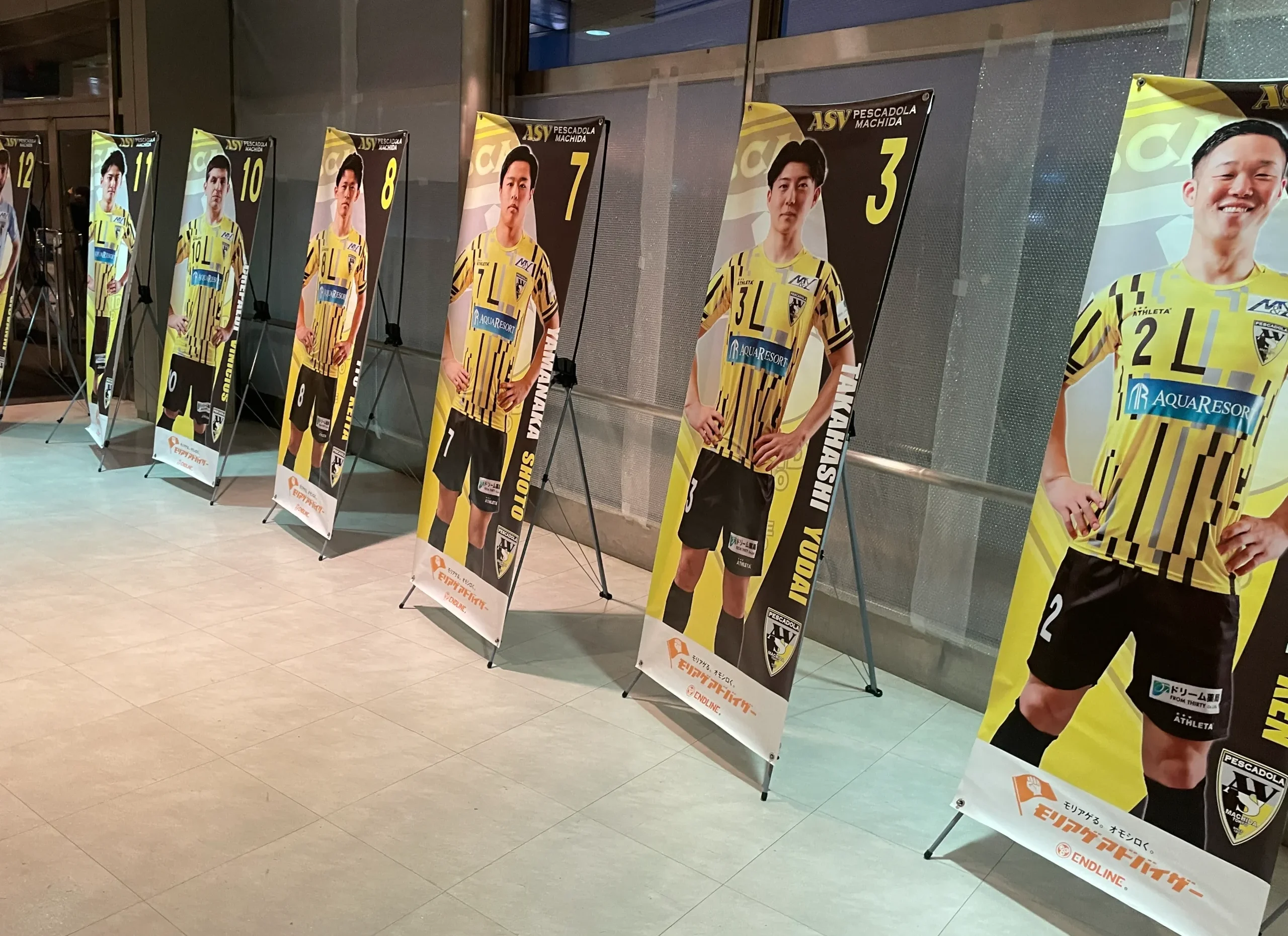 Fリーグ「ぺスカドーラ町田」様の選手バナーの作成も行いました。