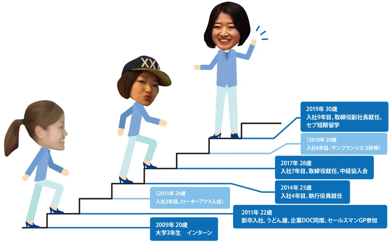 インターンシップから入社、営業担当、執行役員、役員、副社長へ